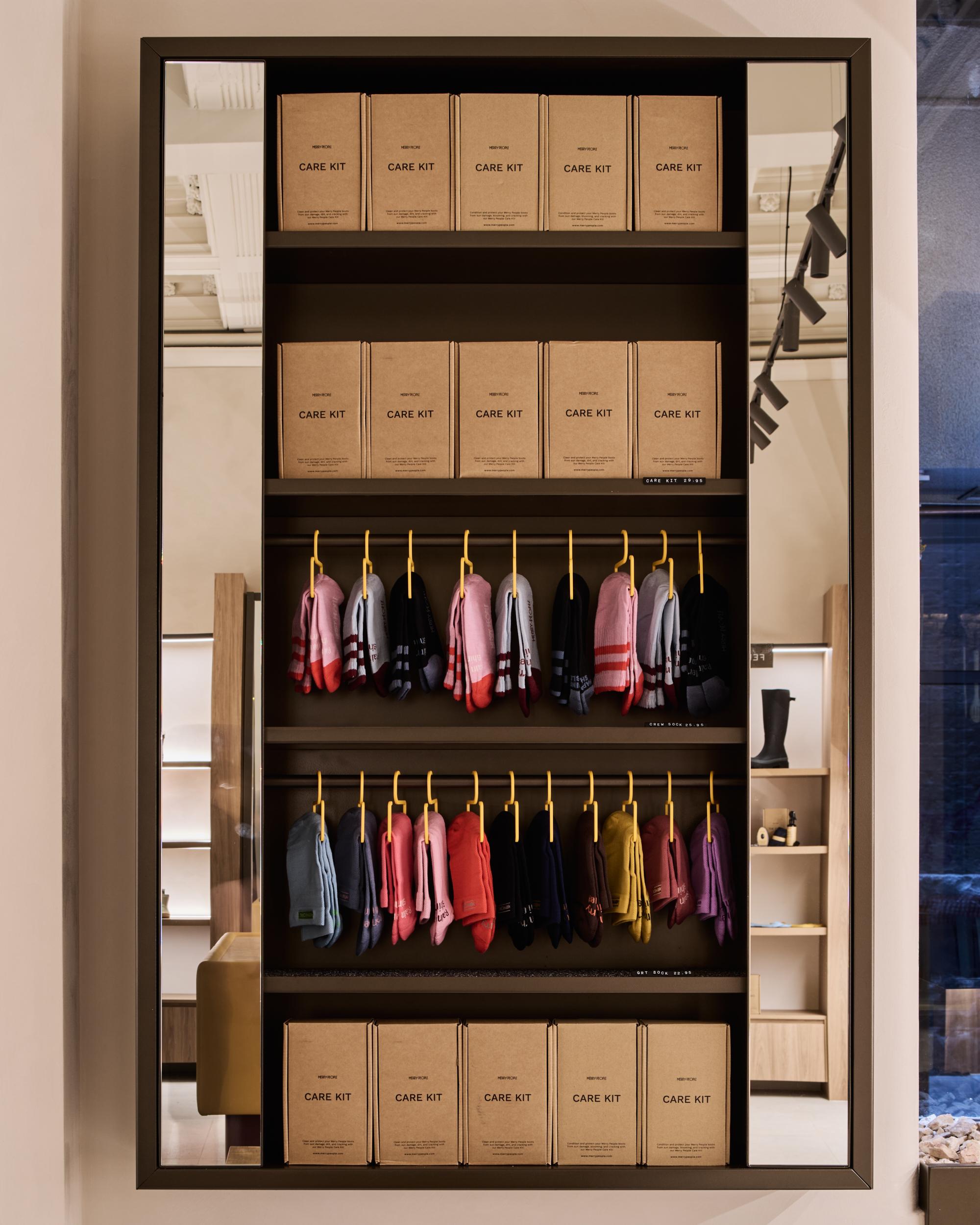 The heritage shell provides a quiet backdrop for a gallery-like retail experience, where refined, minimal displays allow the brand’s colourful products to take centre stage without distraction.